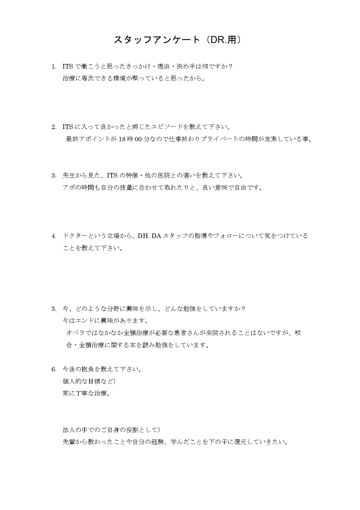 歯科治療に対する知識、抜術を向上させ、他のDrの刺激になるような歯科医師になりたいです。